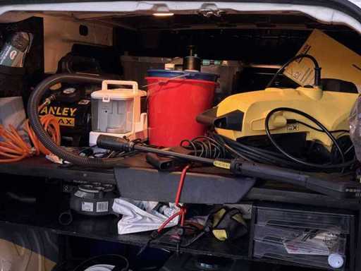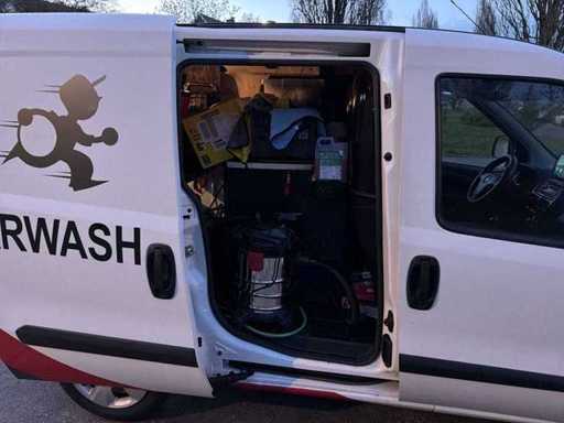 CARWASH CAR Aanwezige apparatuur / inrichting - 280 liter watertank - Generator - Hogedrukspuit - Spuitslang - Luchtslang - Luchtspuit / blaaspistool - Compressor (voor o.a. banden oppompen) - Stoomreiniger / stoomapparatuur - Stofzuiger / nat- en droogzuiger - Opbergsysteem / werkindeling achterin - Reinigingsaccessoires en toebehoren Geschikt voor o.a. - Exterieur reiniging - Interieurreiniging - Stoomreiniging - Velgen / banden reinigen - Op locatie auto’s wassen - Mobiele detailing service
