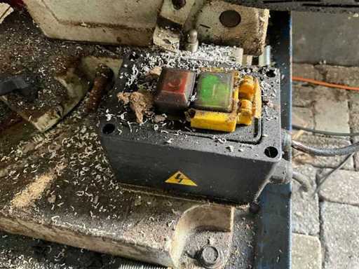 Horizontale metaallintzaagmachine, vaak gebruikt voor het op maat zagen van metalen profielen en buizen.