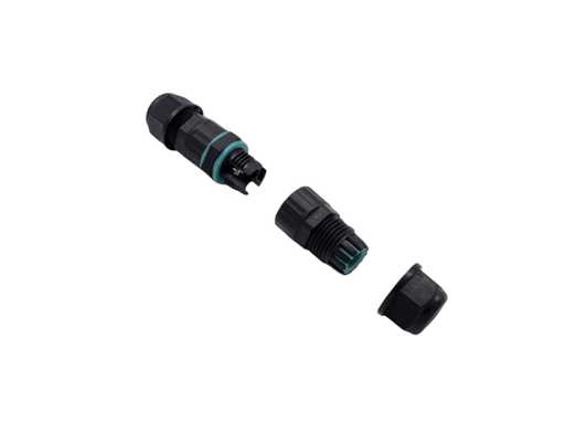 afdichting IP68, 4-8mm kabeldikte, max 1.5mm² draaddikte, max 250V 24A, Connector geschikt voor buiten kabel installatie en 1-2-3 aderige kabels, afm Ø 21.5 x 76mm, bedrijfstemperatuur-40C° tot 105C°, SKU 800
