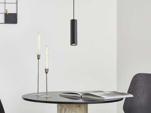 afdichting IP20, product kleur zand zwart, afm. Ø 55 x 240mm, kabellengte 100cm, materiaal aluminum, bevestiging inclusief, fitting GU10, bulb niet inbegrepen, geschikt voor binnen, een bulb invoer, voltage 220-240V, SKU 00894