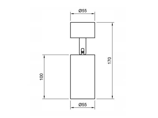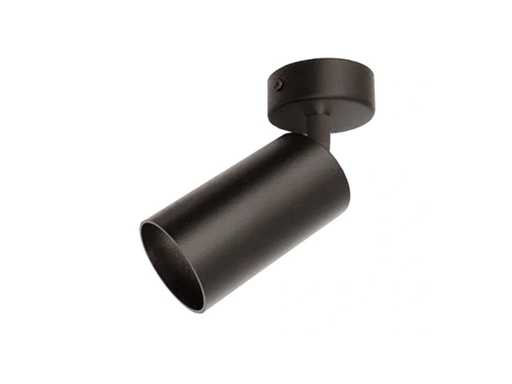 afdichting IP20, product kleur zand zwart- afm. Ø 55 x 100mm, draaibaar 350° en kantelbaar 90°, materiaal aluminum, bevestiging inclusief, fitting GU10, bulb niet inbegrepen, geschikt voor binnen, een bulb invoer, voltage 220-240V, max 35 watt, SKU 00524