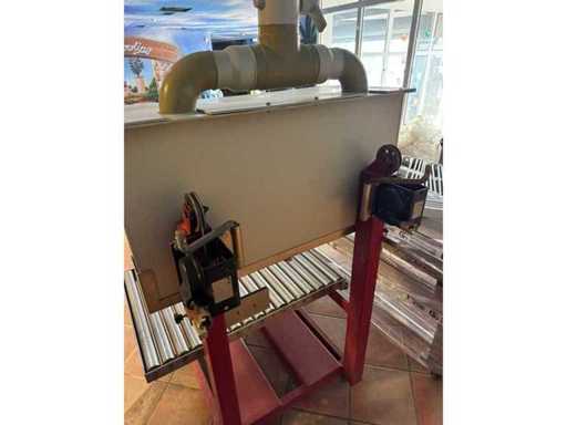 Mobile laminar dust extraction for sample extraction or removal from drums, with casters, made of PP.