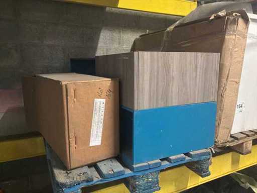 1 x badkamermeubel met lavabo van 103 x 37 x 73 cm 1 x hangmeubel van 120 x 50 x 50 cm 1 x bidet 1 x wc Verschillende diverse accessoires Lot verdeeld over 4 paletten