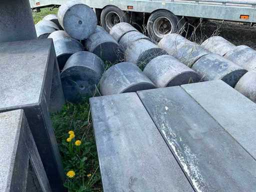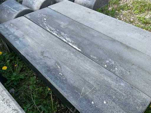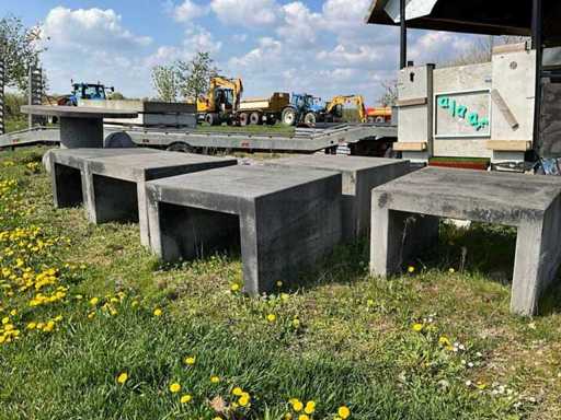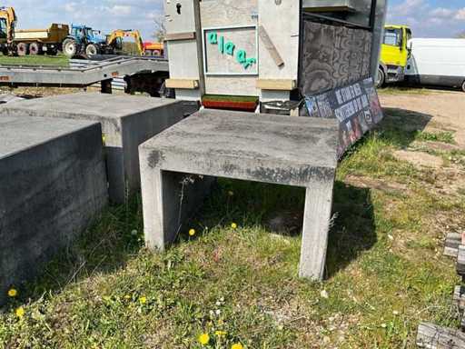 bestaande uit 21x betonnen stoel (ø 500 mm), hoogte 450 mm, 1x ø 1600 mm tafel, hoogte 1300 mm (waarvan 500 mm ingegraven moet worden), 5x betonnen tafel, (LxWxH) 1200x1200x800 mm, 3x betonnen bank, (LxWxH) 1800x400x450 mm