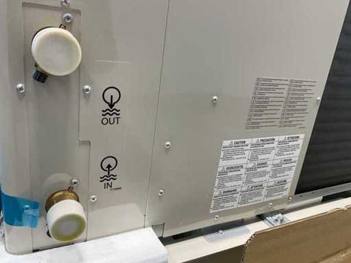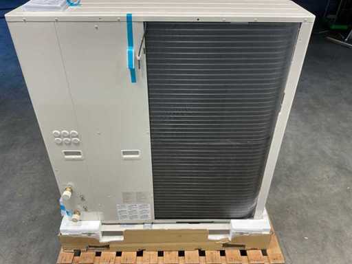 De buitenunit heeft afmetingen van 1410 x 1283 x 320 mm (h x b x d) en een nettogewicht van circa 150–164 kg. Het systeem behoudt zijn verwarmingscapaciteit bij lage buitentemperaturen tot circa -20°C.
