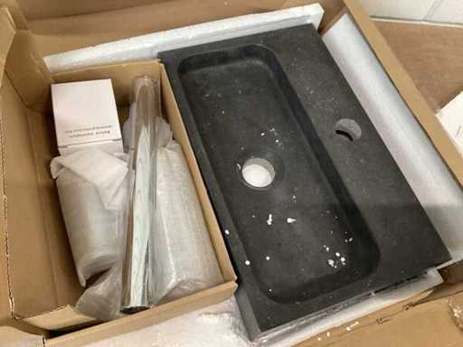 wasbak natuursteen compleet met kraan, sifon, afvoerplug. Gecontroleerde webshopretour
