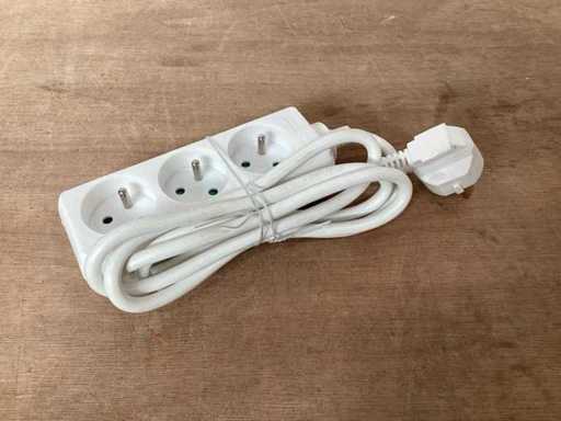 3 voudige stekkerdoos met penaarde, kabel 140cm, max 3680 watt, kinderbeveiliging