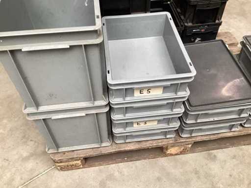 diverse magazijnbakken met en zonder deksel