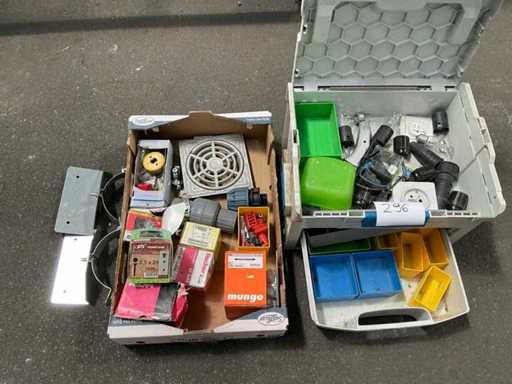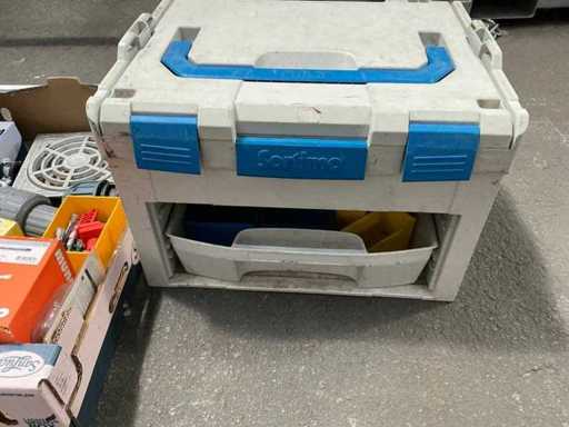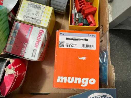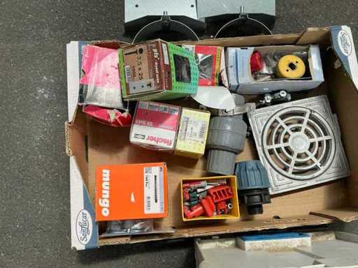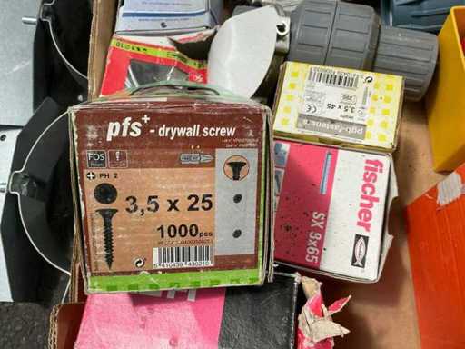 Waaronder pvc opbergkoffer sortimo compleet met inhoud, partij bevestigingsmaterialen waaronder HILTI, Fischer, pfs, schroeven en pluggen,… alu rooster