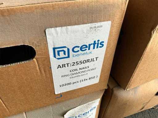 Compleet met circa 15 dozen elk inhoudende certis, Coil nails; ring diamont point, 12 x 850 pcs