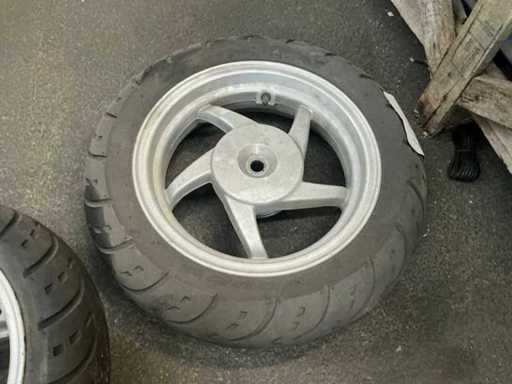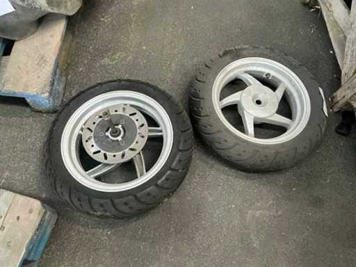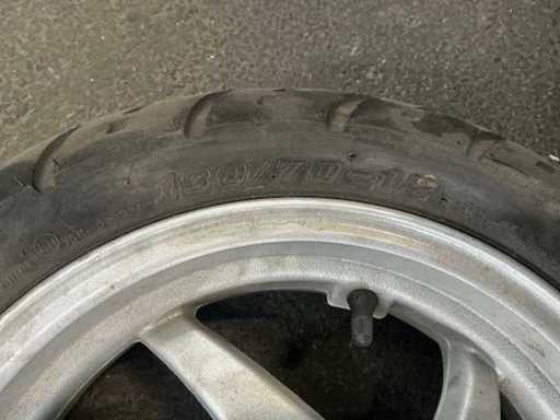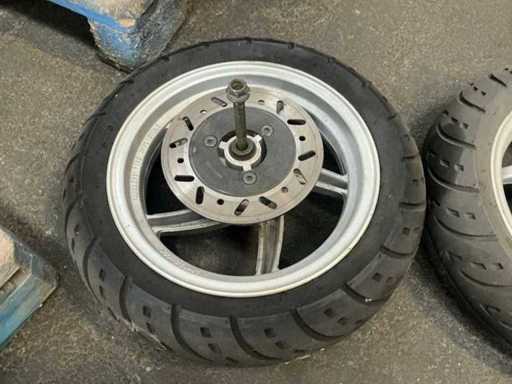 Voorband 130/70, achterband 120/70 met remschijf
