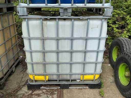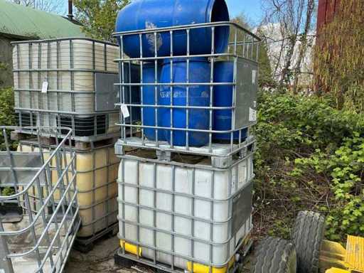 1x voorzien van kunststof vat, 1x kooi met 4 vaten