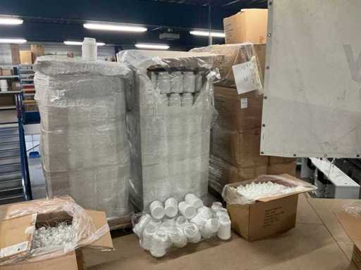 Bestaande uit cosmetica (pet) flessen, potten, verstuivers en doppen, in diverse volumes (ml), verdeeld over 25 pallets.