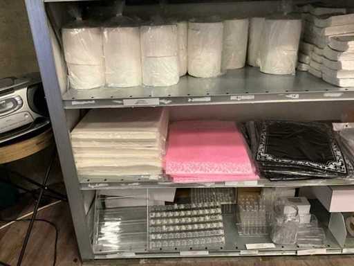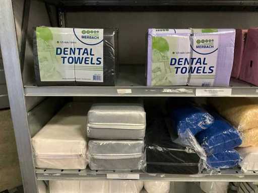 Bestaande uit onder andere: mondmaskers, handschoenen, dental towels, arm rust kussens, brush wipes, celstof deppers, anti slip mat, displays, vijlen, paraffine wax warmers, brush boxes