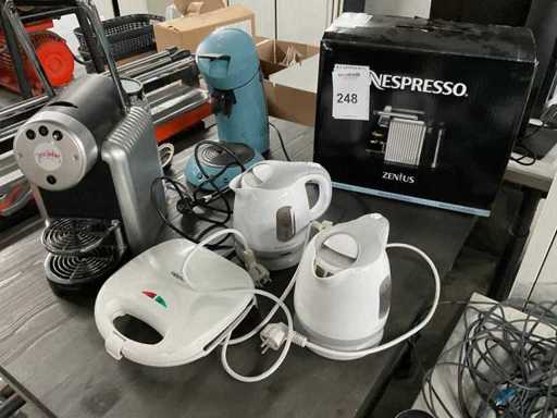 Set bestaande uit Nespresso koffieapparaat, Senseo koffiemaker, 2 waterkokers en tostiapparaat