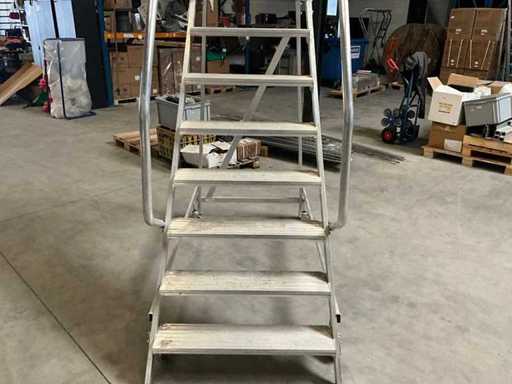 Aluminium, 7 treden, reling. Platform hoogte 1900mm