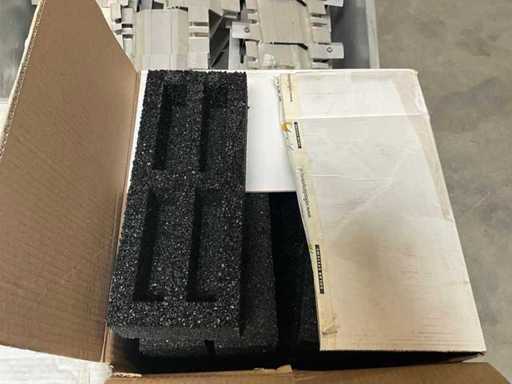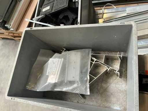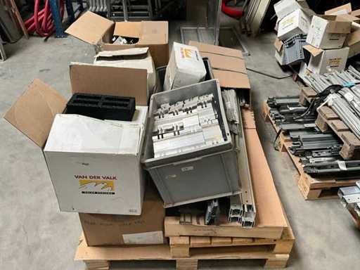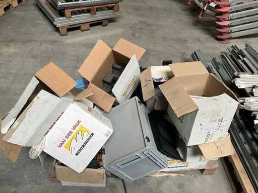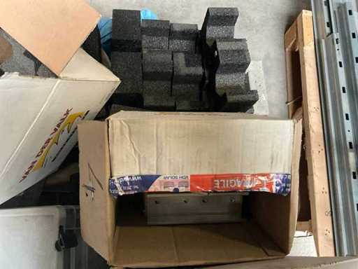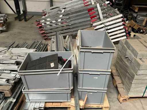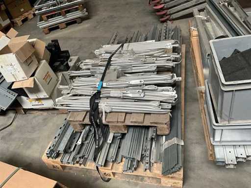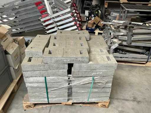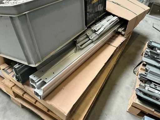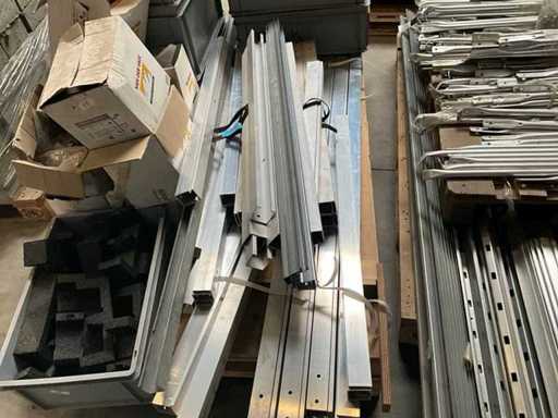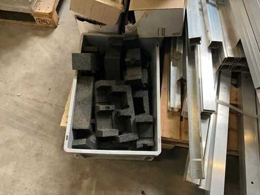 Bestaande uit contra gewichten, profielen, steunen, rubber blok, op 5x pallet.