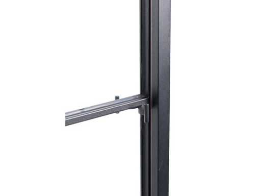 Stalen deur in zwarte poederlak met heldere glaspartijen. De deur is opgebouwd met een zwart gepoederlakt paneel en daarboven een 6-glasverdeling. Omwille van een magnetische strip over de volledige lengte van de deur, is geen slotmechanisme nodig en sluit de deur gemakkelijk tegen de magneet op de aanslag. De kleine elegante trekker zorgt ervoor dat je de deur makkelijk kan openen en sluiten.