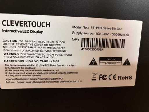 2018 Clevertouch Plus 5th gen interactive touchscreen 75”