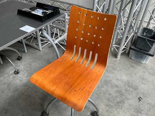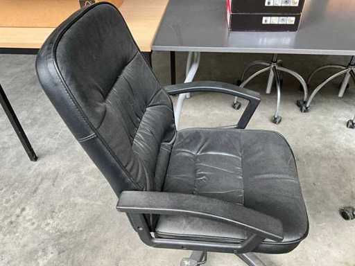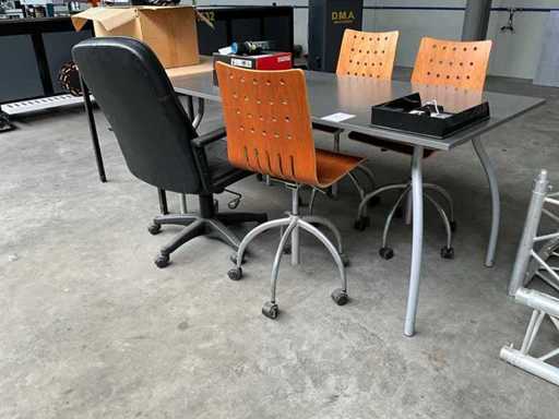 1x tafel (LxWxH) 1600x800x750 mm, 3x stoel hout/metaal, 1x bureau stoel (leder), inclusief bureau (LxWxH) 800x800x770 mm, zonder accessoires op de bureau’s