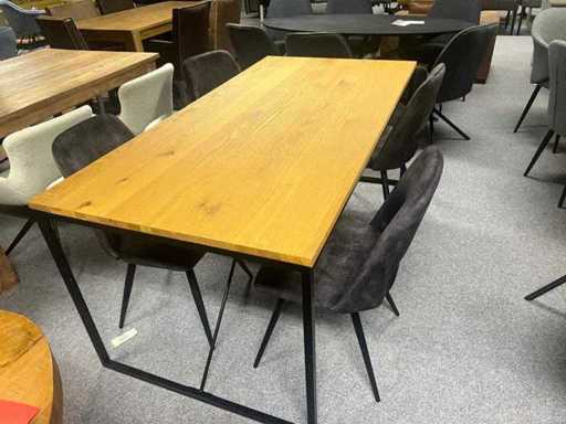 Eetkamertafel, Eiken tafel 200 x 100 x 78 cm staal onderstel, PLUS 4 x draaibare stoelen velvet grijs