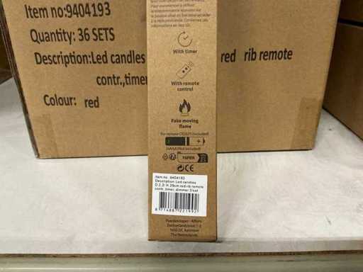 Partij Led Candles Wax Red Rib Ø2,2xH29cm 2/set (108x)