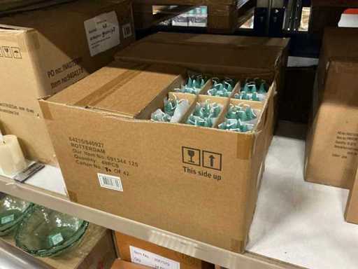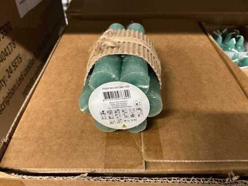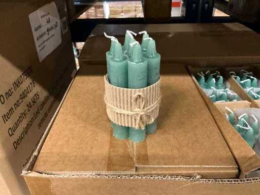 96 bundels, per bundel 7 kaarsen = totaal 672 kaarsen.