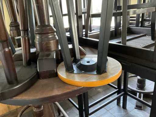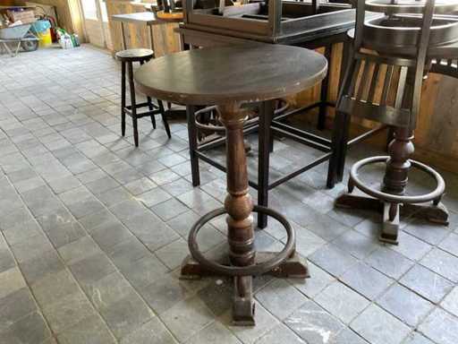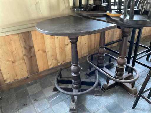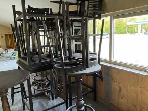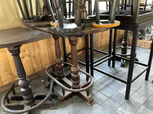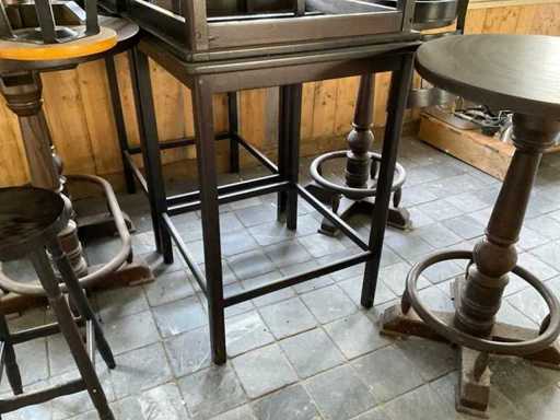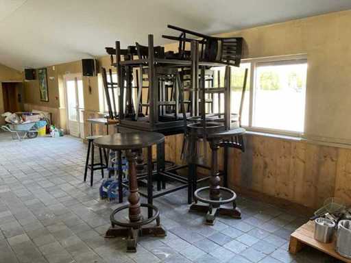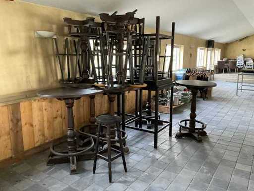 Bestaande uit: 4x 75 cm diameter, 1x 140x70 cm, 1x 70 cm muurtafel, 4x 80x80 cm, 7 krukken, 3 stoelen.