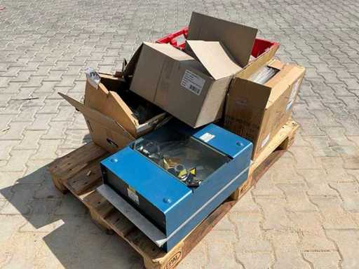 Accu-Sort Systems Quad-X DRX omnidirectional laser barcode scanner, diverse metalen onderdelen, diverse netwerk onderdelen, showcard standaarden, zonder pallet