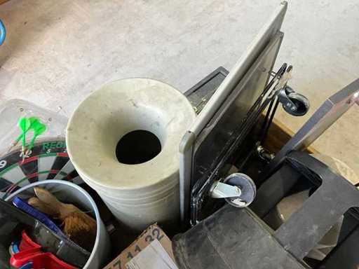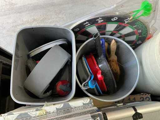 Gereedschapskoffers, opstapje, schoonmaak gereedschap, kluis, prullenbakken, brandblussers, zonder pallet en palletranden