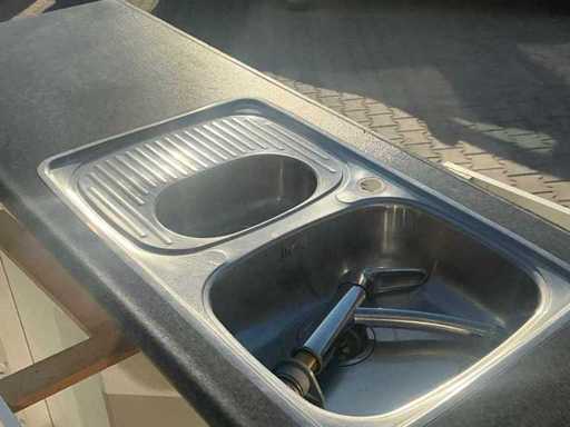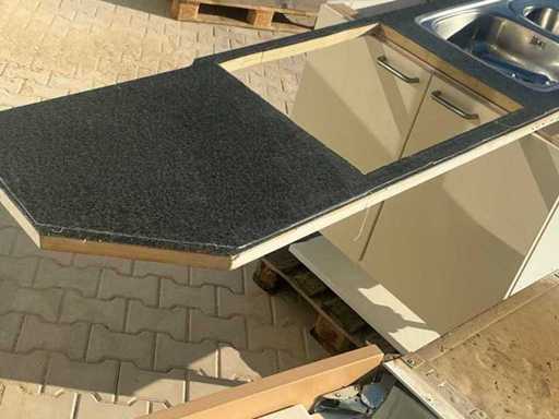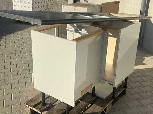 Bestaande uit 2x onderkast, 1x aanrechtblad(280cm), 1x mengkraan, 1x Siemens combimagnetron en 1x Siemens inbouwkoelkast, op 2 pallets