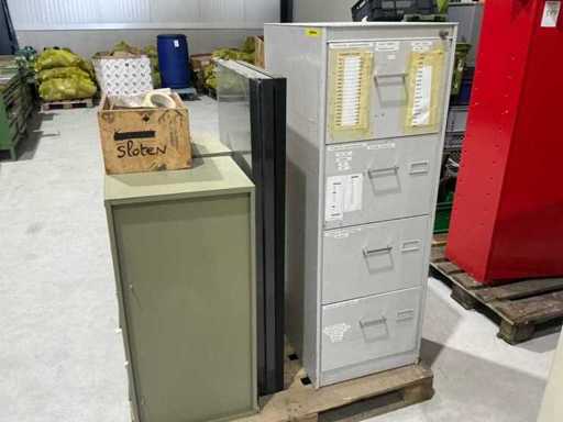 Waarvan 2x lockerkast(zonder sleutels), 1x dossierhangmapladenkast, en 3 schappen, op 1 pallet