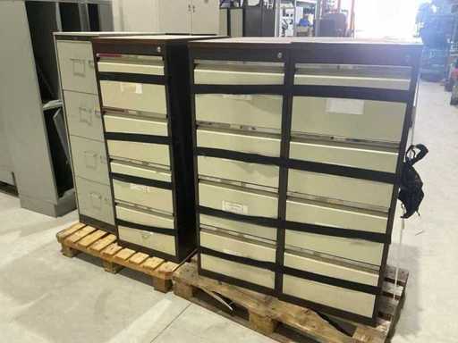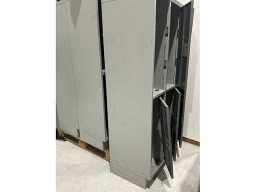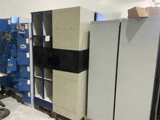 Bestaande uit 3 dossierladenkasten en 9 diverse lockerkasten(allen defect/incompleet