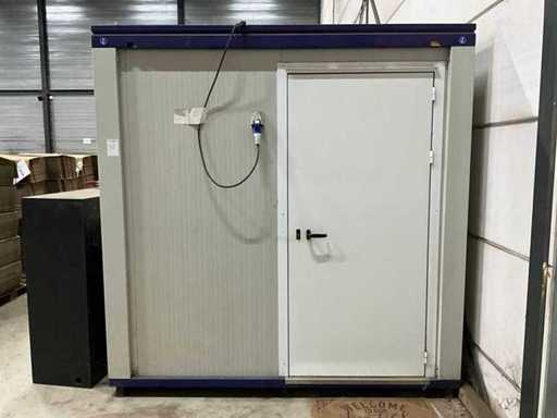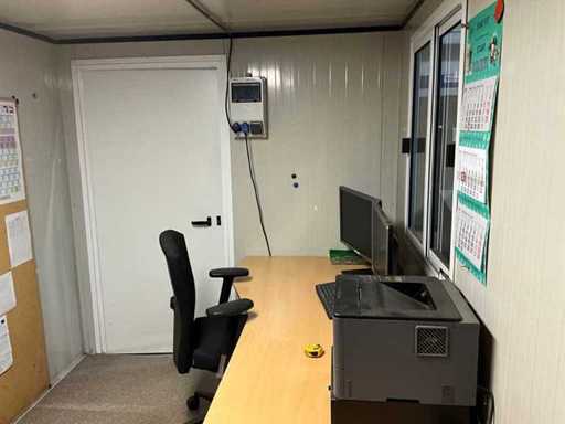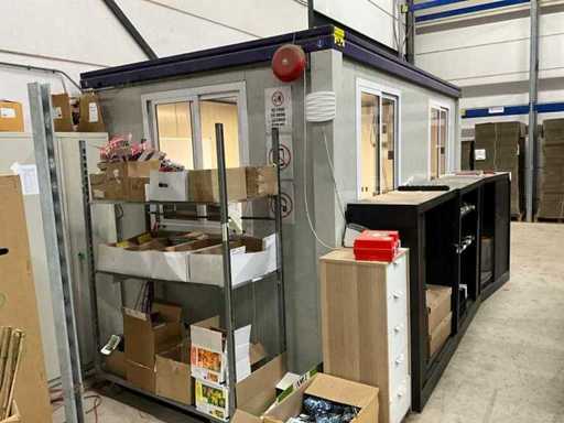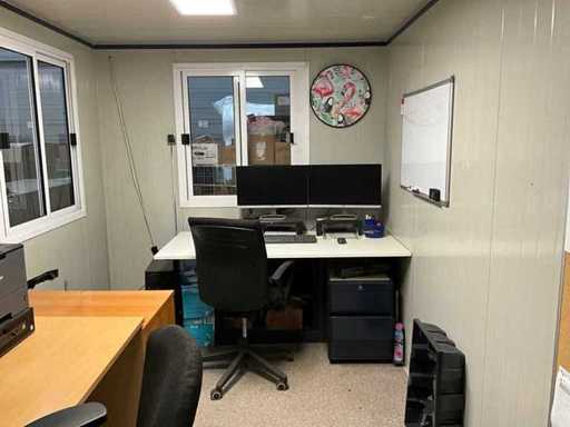 Voorzien van heftrucksleuven; Inrichting bestaat onder andere uit: 2x werkplek met desktops