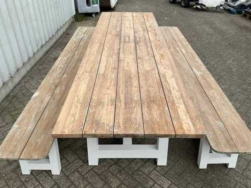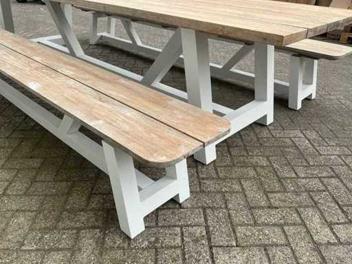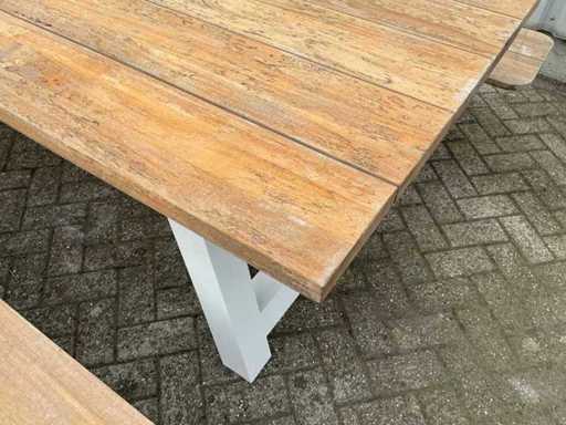 Betreft een nieuw onderstel, let op het tafelblad hoort NIET bij het onderstel. (Tafelblad en banken zitten niet vast gemonteerd)