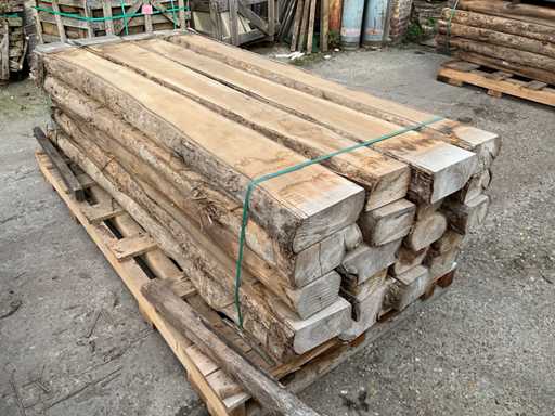 Bestaand uit circa 20 balken met een gemiddelde afmeting van 230x25x11 cm