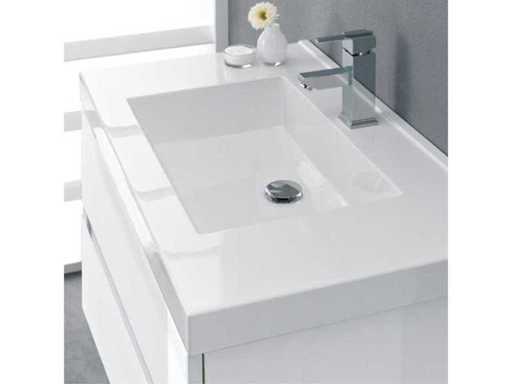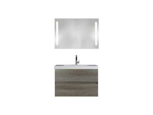 Kavel wordt geleverd zonder kraan. Kavel bestaande uit drie pakketten: 1x onderbouwkast, 1x Wastafel, 1x Spiegel met LED verlichting, afmeting W/D/H 90 x 3 x 70 cm.