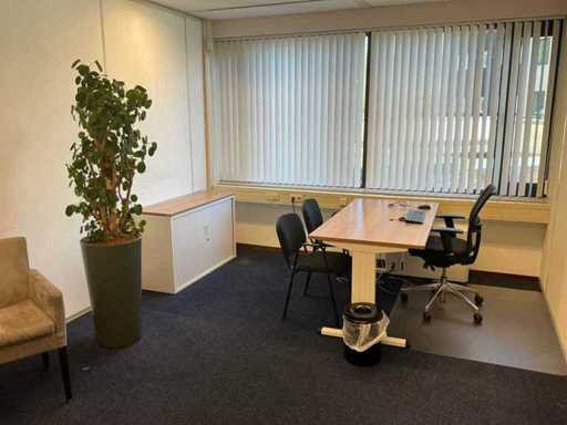 Bestaande uit inhoud kantoorruimte voorzien van onder andere: Bureau (LxBxH:800x1600x760mm), ladeblok, bureaustoel, 2x kantinestoel, dossierkast (LxBxH:440x1200x750mm), hydrocultuurplant in pot circa 190cm hoog, 2x wachtkamer stoel met tafel, kapstok, wanddecoratie en whiteboard.