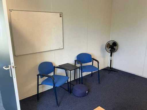 Bestaande uit inhoud kantoorruimte voorzien van onder andere: Bureau (LxBxH:800x1600x760mm), ladeblok, bureaustoel, plant in pot circa 180cm hoog, 2x wachtkamer stoel met tafel, ventilator en whiteboard.