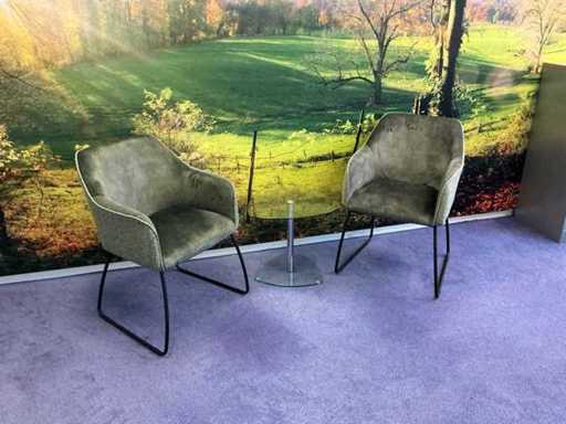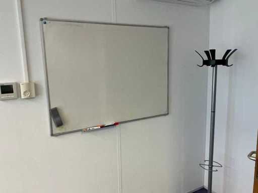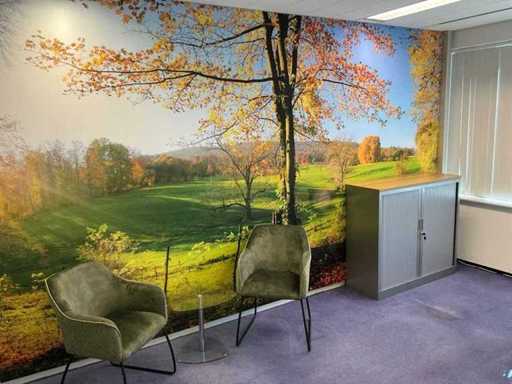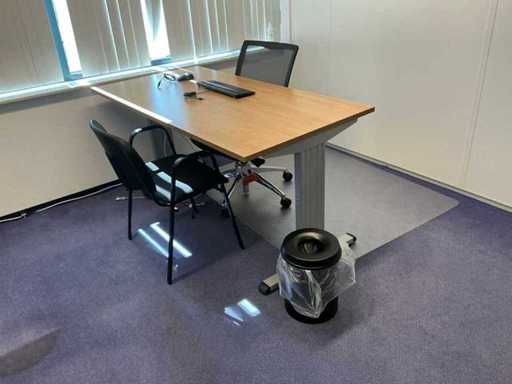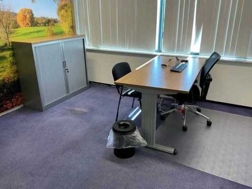 Bestaande uit inhoud kantoorruimte voorzien van onder andere: Bureau (LxBxH:800x1600:760mm), 1x bureaustoel, 2x wachtkamer stoel met tafel, dossierkast, wanddoek (LxH:5000x2500mm) en whiteboard.