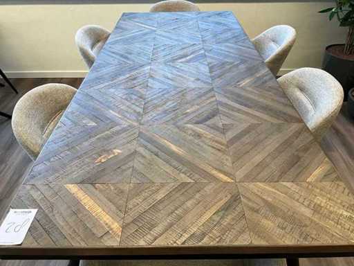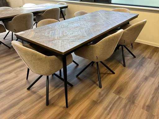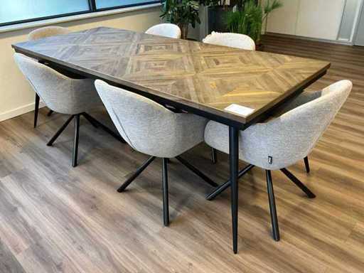eetkamertafel voorzien van metalen frame en houten blad; inclusief 6x Woood Juno eetkamerstoel, gestoffeerd, zithoogte: 46cm