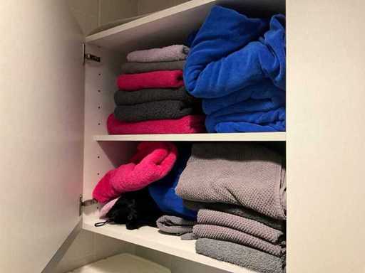 Inclusief inhoud ruimte, waaronder: wasmiddel, plantenpot, handdoeken, overtrekken, etc