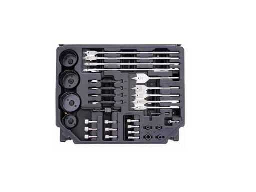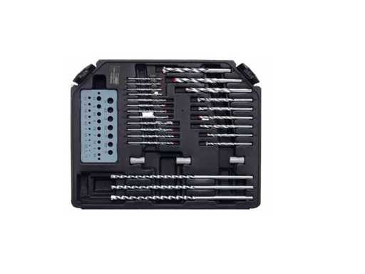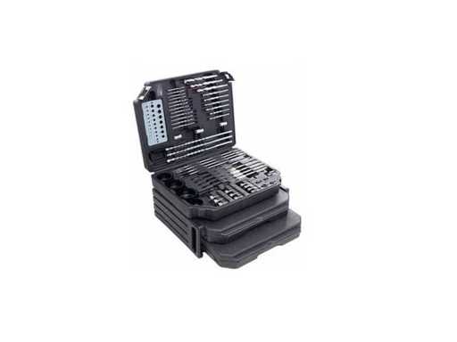 Complete gereedschapsset ontworpen voor werkplaatsen, assemblage en renovatiewerkzaamheden. De set bevat tot 300 elementen, waardoor het een universele oplossing is voor boren, schroeven en bewerken van diverse materialen zoals metaal, hout, beton of kunststoffen.