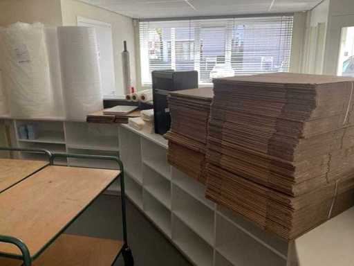 Partij diverse verpakkingsmaterialen met weegschaal en papiervernietiger