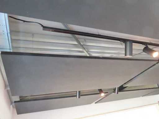 zwart, met randfineer, diverse maten. Hangen op circa 3 meter hoogte, zelf demonteren