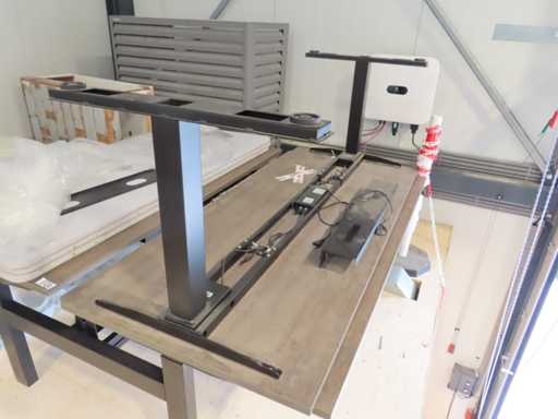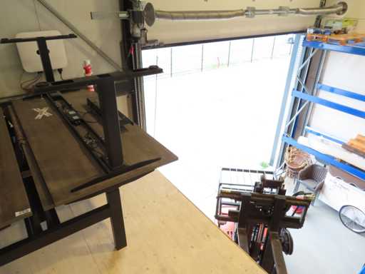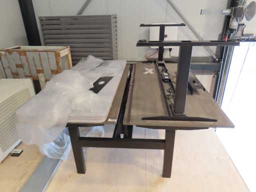 Betreft 1 elektrische verstelbaar Zit/Sta Duo-Werkplek en 1 enkele elektrische zit/sta bureau (mist bediening), inclusief 3 wandschermen. Zie kavel 416 en 417 voor voorbeeld. Staat op vliering, geen trap aanwezig, wel heftruck (zelf bediening)