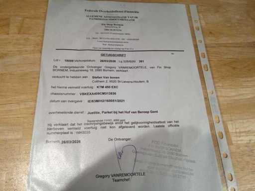 boorddocumenten: verkoopsattest van politie voor aanvraag inschrijvingsbewijs. gelijkvormigheidsattest aanwezig.