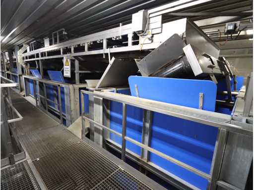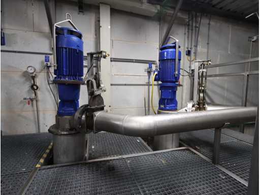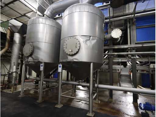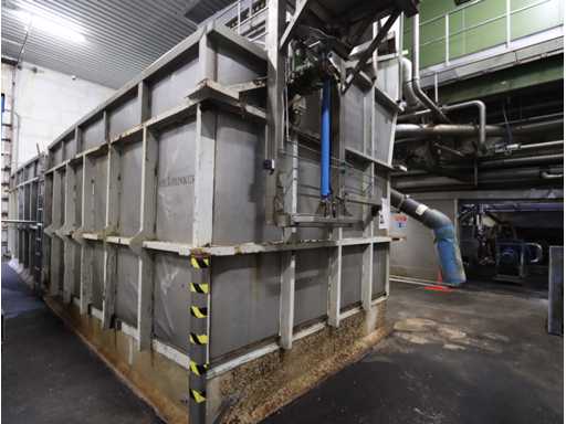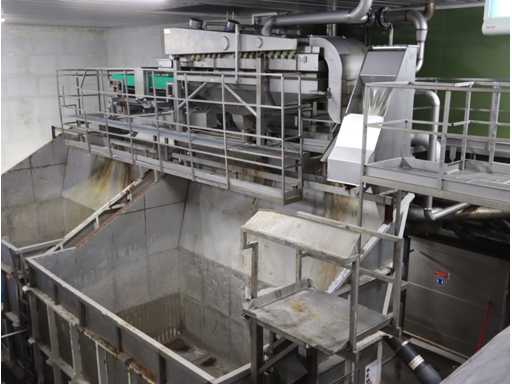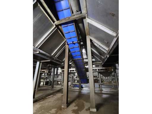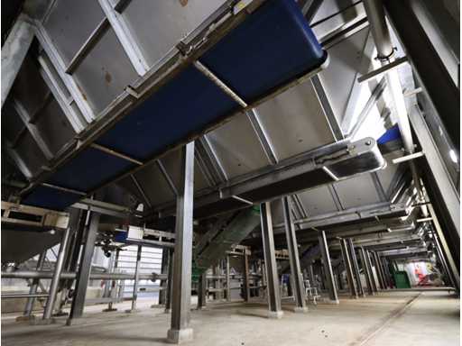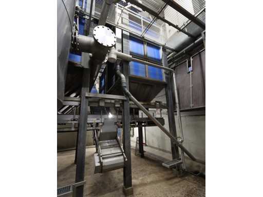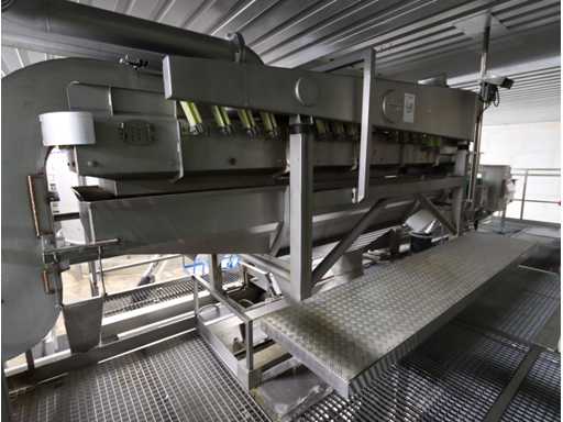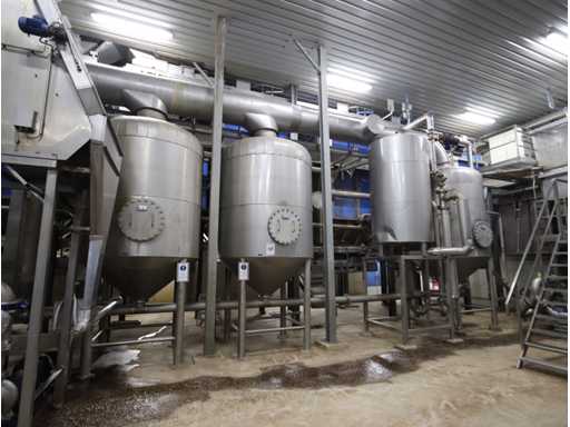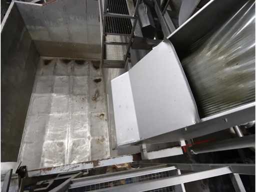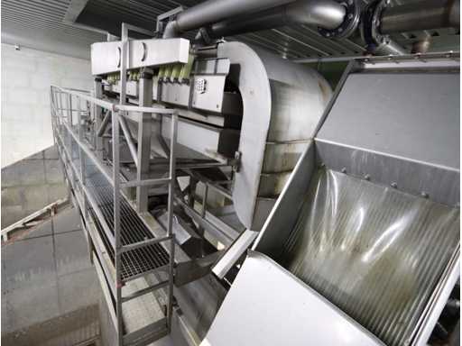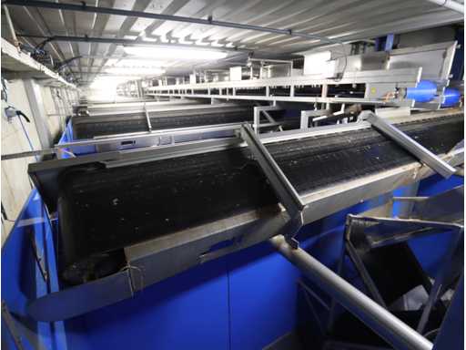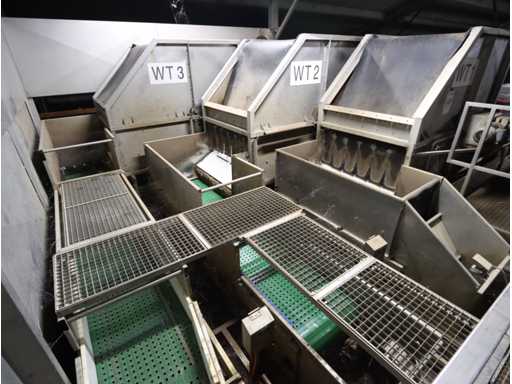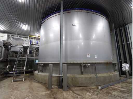 Bestaande uit: 3 RVS intake unit met onderlopende transportbanden, 10 Stortbunkers in stalen frame met bovenlopende transportband, 5 voudige RVS verticale tankopstelling, in diverse afmetingen met diverse pompen, 1 RVS pulp opslagtank, schudzeef opstelling op bordes met ondergebouwde bunker, diverse pompen, leidingwerk