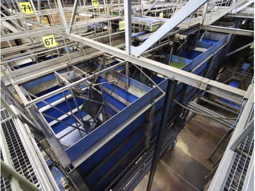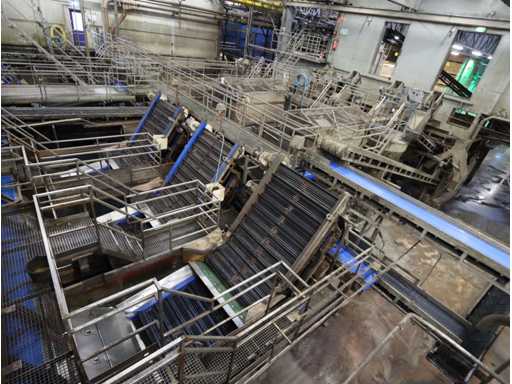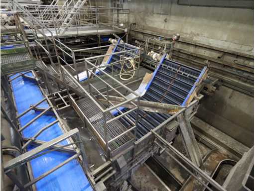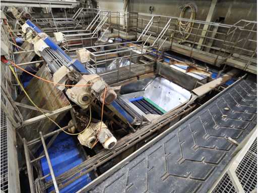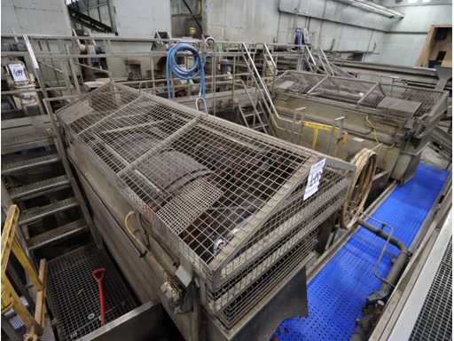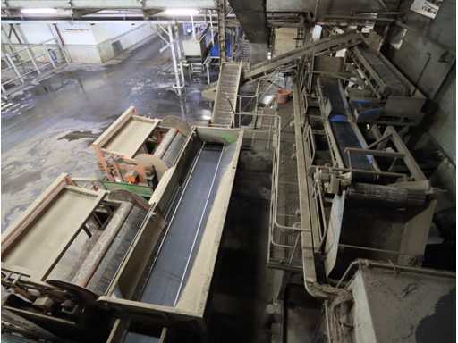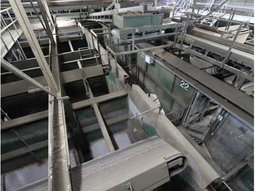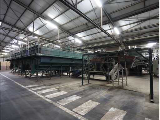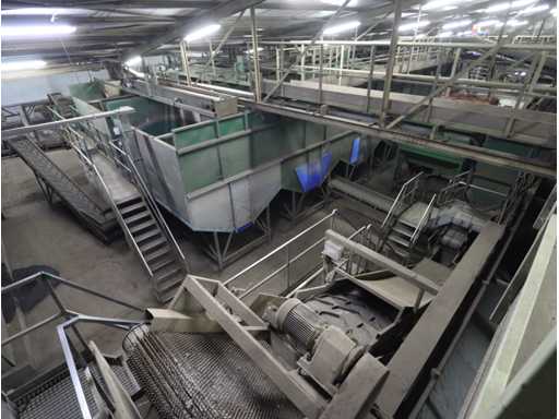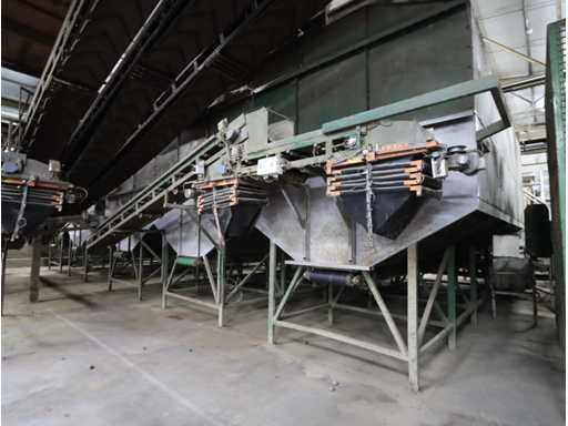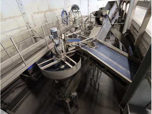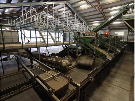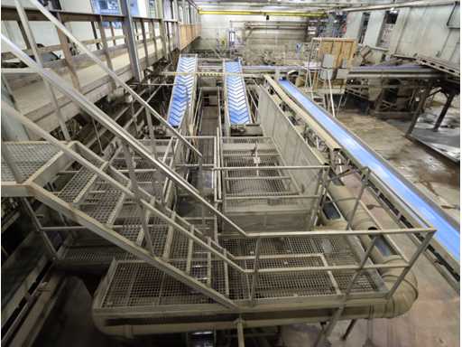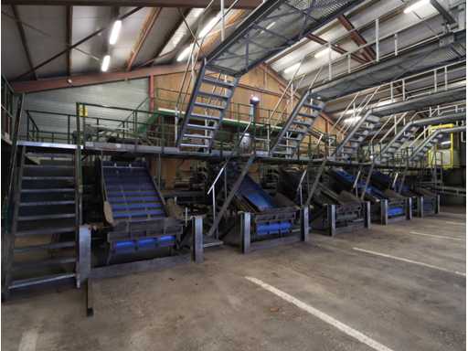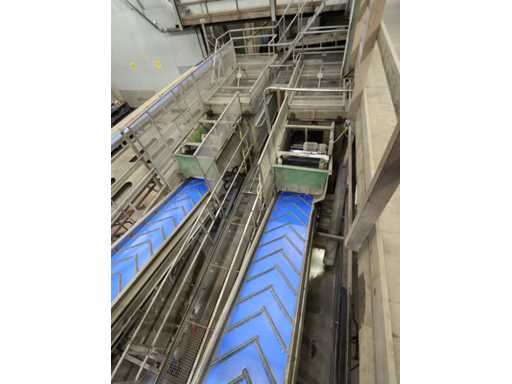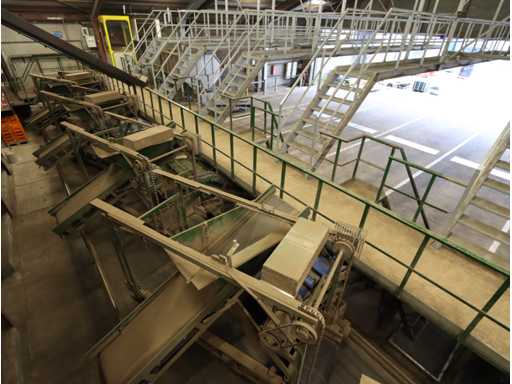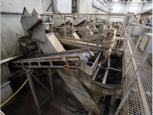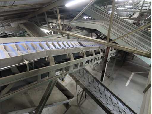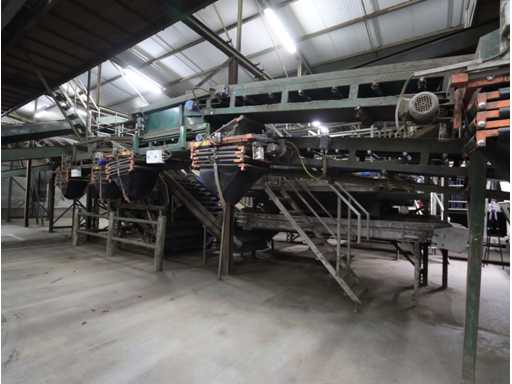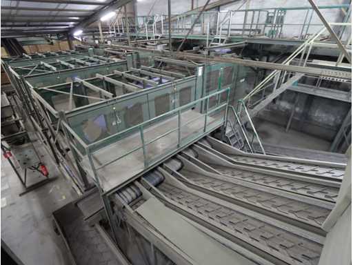 Bestaande uit onder andere Intake: 5-voudige trailer los opstelling, met transportband doorvoer installatie, 5 inspectiebruggen. Voorsorteer hal: 6 sorteermachines, w.o. “Dijkstra” type TT2/6, 4 meervoudige stalen aardappel opslagbunkers met verbindende transportbanden en loopbordessen. washal: 5 RVS cycloon scheiders, 4 RVS trommelwassers, diverse verbindende en opvoer transportbanden, zout baden, 5 opvoer spijlen transportbanden, 2 meervoudige bunker opstellingen met verbindende transportbanden en bordessen. Het geheel voorzien van diverse pompen, waaronder levensmiddelen pompen, appendages en leidingwerk (alles op aanwijzing Troostwijk)