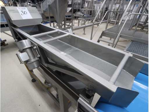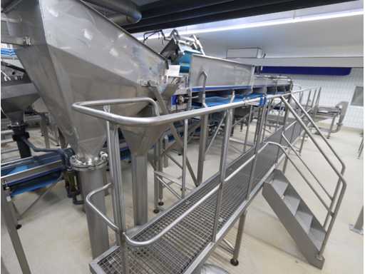Bestaande uit: “Odenberg” optische sorteermachine, met mechanische vinger uitwerp systeem, “Tomra” touchscreen bediening, RVS invoerbunker voorzien van zij/top invoer, onderlopende schuingestelde transportband, hoog geplaatste invoer transportband, geheel voorzien van 2 onderlopende transportbanden en dwars geplaatste invoer met schudzeef en transportband, inclusief bordessen met roostervloer, totaal gebruikte vloer oppervlakte 10500x4750 mm